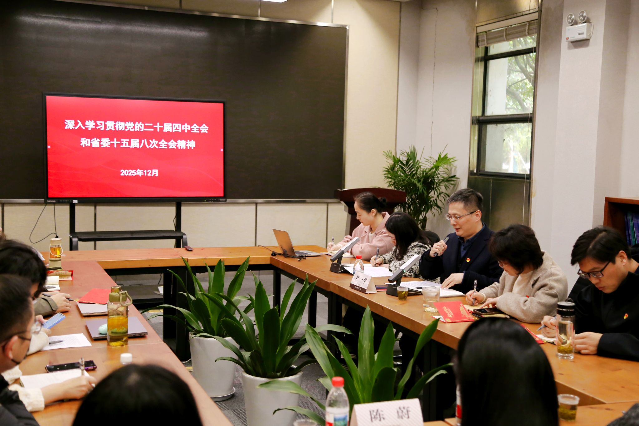 李萌、宋士显分别领学了12月政治理论学习重点材料《习近平总书记对全面依法治国工作作出重要指示》《推进党的自我革命要做到“五个进一步到位”》《因地制宜发展新质生产力》等,许飞飞、蒋璐、孙万欣、王寅秋结合自身思想与工作实际,分享学习体会与思考。