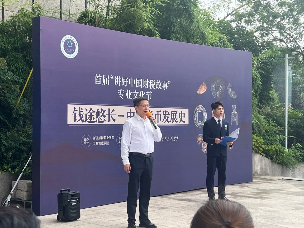2024年6月5日,一场别开生面的文化盛宴——工商管理学院首届“讲好中国财税故事”专业文化节在图书馆一楼拉开序幕。学校党委委员、纪委书记严一平出席本次开幕式,学校工会副主席徐海伟、学工部部长徐初娜、学工部副部长金蓓蕾、团委书记王瑗、博物馆副馆长李镇华、工商管理学院院长雷明化、党总支副书记汪亮、副院长邱宏亮、党总支副书记徐洁以及师生代表共同参加。