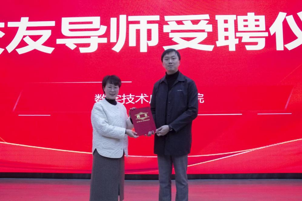 讲座开始前,学院党总支书记周慧颖为郑泽坤颁发校友导师聘书。